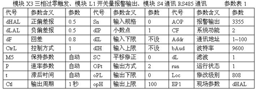 模塊X3三相移項觸發(fā)、模塊L1開關量報警輸出、模塊S4通訊RS485通訊參數(shù)