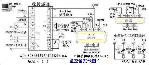根據(jù)系統(tǒng)的要求我們可以選用各種儀表類型如AI-808PAI5X3L1L1S4+AIJK3,利用AI-808P的主輸出作為AIJK6的控制信號,來控制加熱輸出,AI-808P智能調(diào)節(jié)器增加了30段時間程序控制功能,前30段可編程為自動跳轉(zhuǎn)執(zhí)行,實現(xiàn)循環(huán)控制,采用先進的模塊化設計,具備5個功能模塊插座:輔助輸入、主輸出、報警、輔助輸出及通訊,