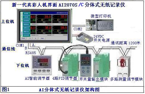 1、上位機(jī):新一代真彩人機(jī)界面AI-2070S/C分體式無紙記錄儀,使用宇電AI系列調(diào)節(jié)儀表作為測(cè)控輸入模塊實(shí)現(xiàn)多通道數(shù)字全屏顯示。測(cè)控儀表不僅包括各類溫度、壓力、等信號(hào),也包括人工智能PID調(diào)節(jié)、可按需要配置,任意組合;