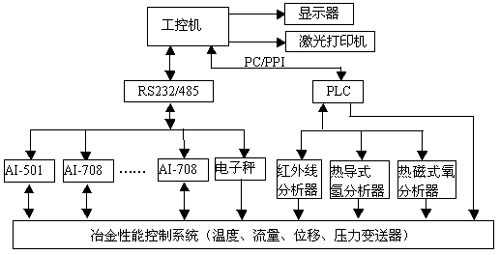 引言:高爐冶煉系統(tǒng)是一個(gè)復(fù)雜的控制系統(tǒng),對(duì)其進(jìn)行解剖代價(jià)高昂。該系統(tǒng)模擬高爐冶煉過(guò)程檢測(cè)冶煉過(guò)程中溫度、壓力、流量、位移、失重等各參數(shù)的變化規(guī)律建立冶金性能測(cè)控系統(tǒng)大型實(shí)驗(yàn)室,依據(jù)實(shí)驗(yàn)結(jié)果對(duì)高爐冶煉過(guò)程提供指導(dǎo)性意見(jiàn)。系統(tǒng)采用集散控制結(jié)構(gòu),現(xiàn)場(chǎng)由廈門宇電的AI智能儀表實(shí)現(xiàn)溫度等的精確控制,由PLC來(lái)實(shí)現(xiàn)過(guò)程開(kāi)關(guān)量、部分模擬量及定時(shí)計(jì)數(shù)等的過(guò)程控制,由工控機(jī)實(shí)現(xiàn)集中管理。AI智能儀表先進(jìn)的AIBUS+通訊協(xié)議,支持RS485通訊接口,配合EM-485B模塊構(gòu)成了該系統(tǒng)的計(jì)算機(jī)通訊系統(tǒng),通過(guò)RS-485串行通訊實(shí)現(xiàn)19個(gè)通道溫度、流量、壓力、位移的集中監(jiān)控。