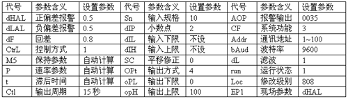 正負偏差報警:選L2 、L2模塊;設(shè)置參數(shù)AOP=0035正偏差則由AL1輸出;負偏差則由AU1輸出